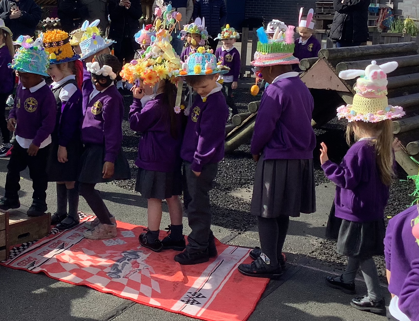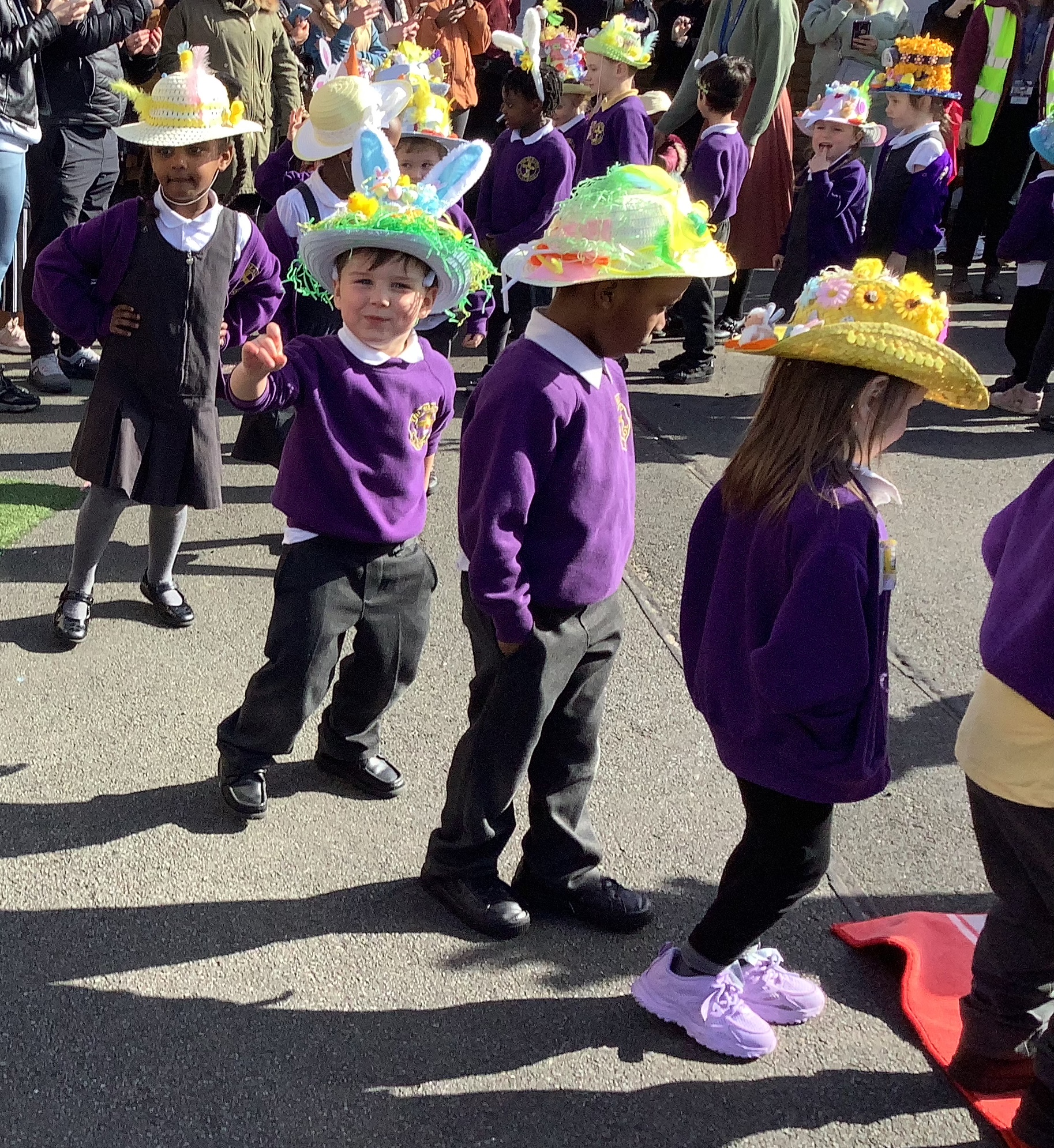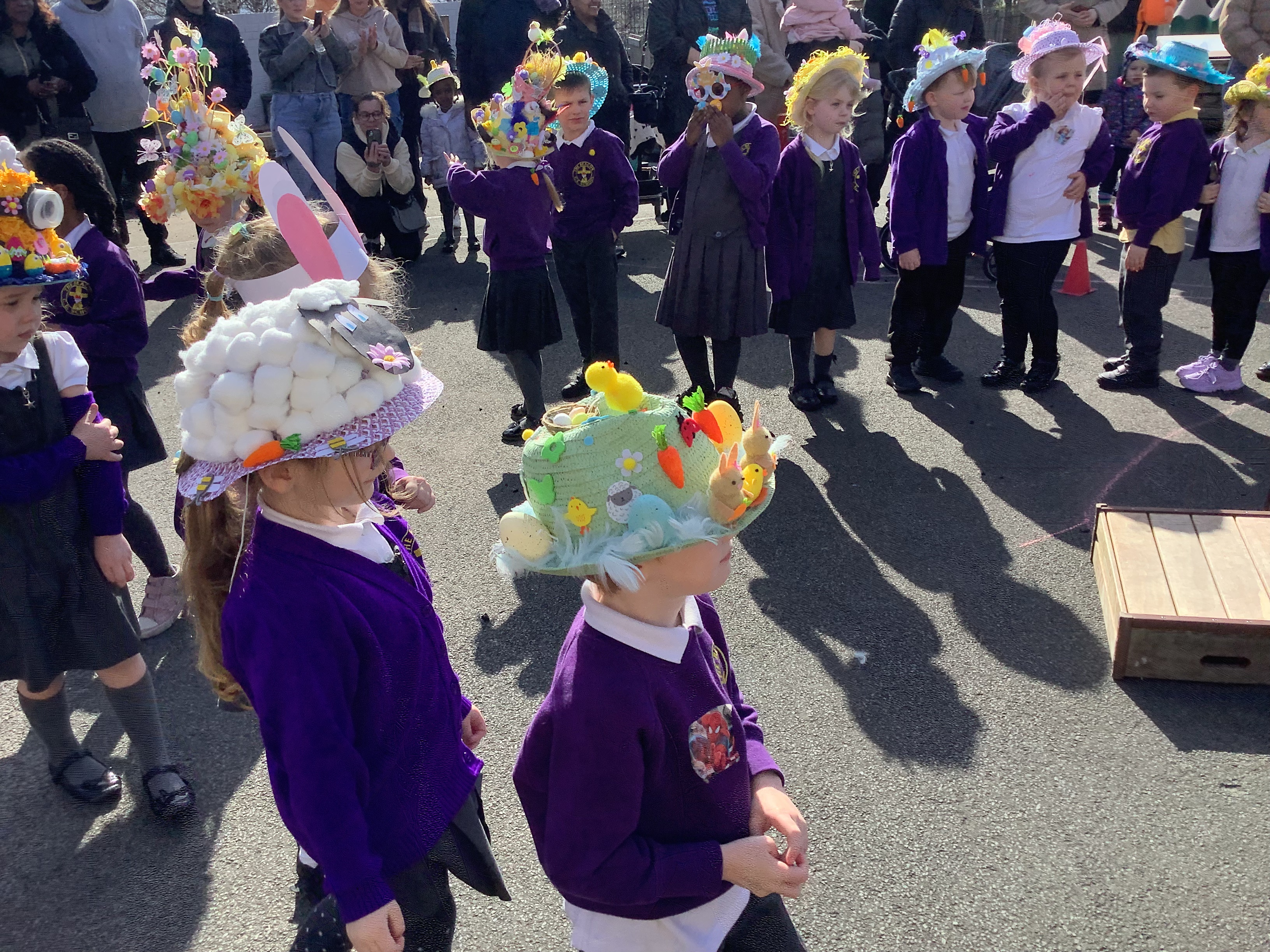 Today, we had our Easter Bonnet Parade! The rain held off and the sun came out and we got to show off our marvellous creations. Thank you to all of the parents and carers for your hard work at making such creative bonnets 🐰🐣👒. Happy Easter!